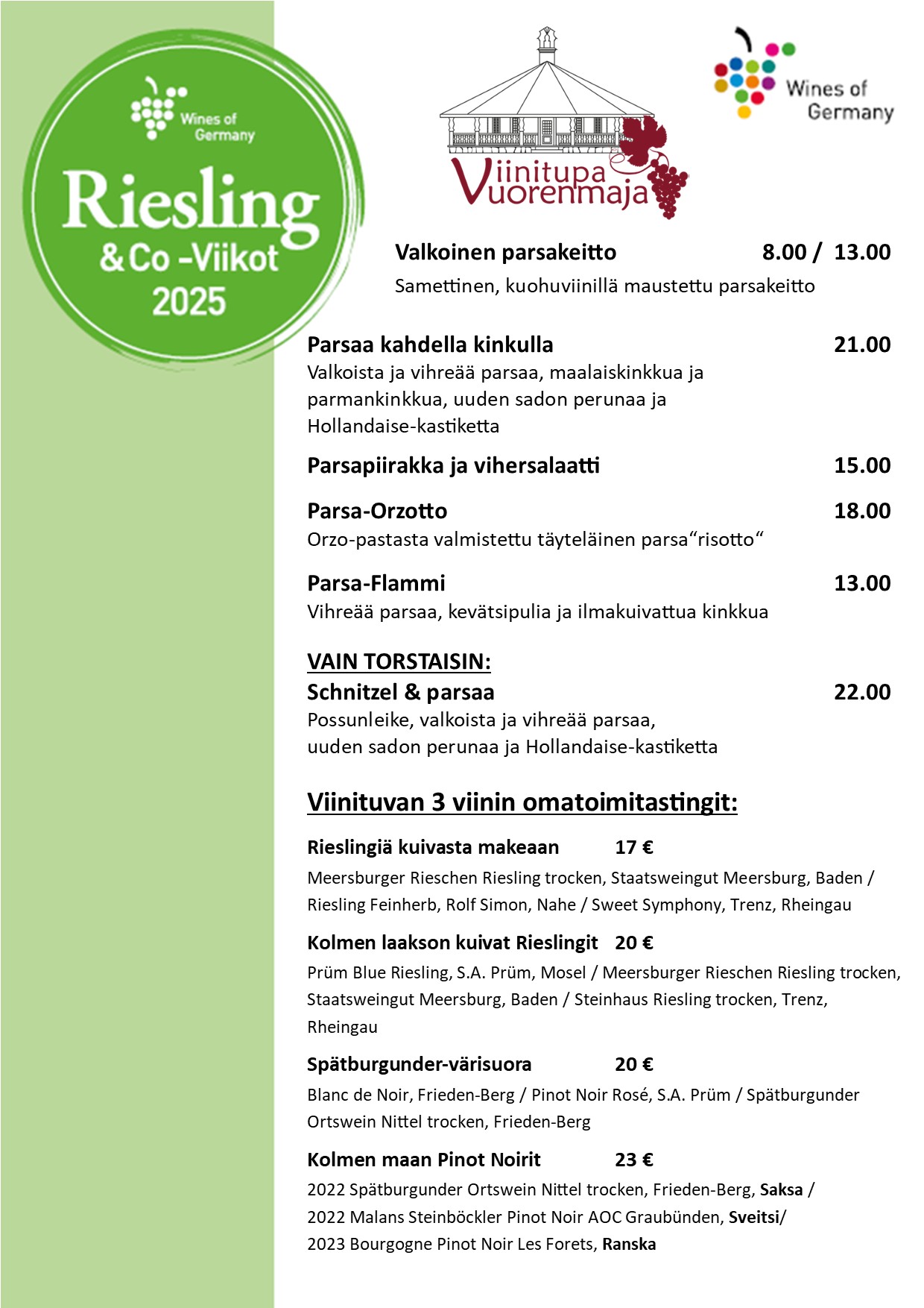 Riesling & Co. ja parsaviikot Vuorenmajalla 13.5.-31.5.2025