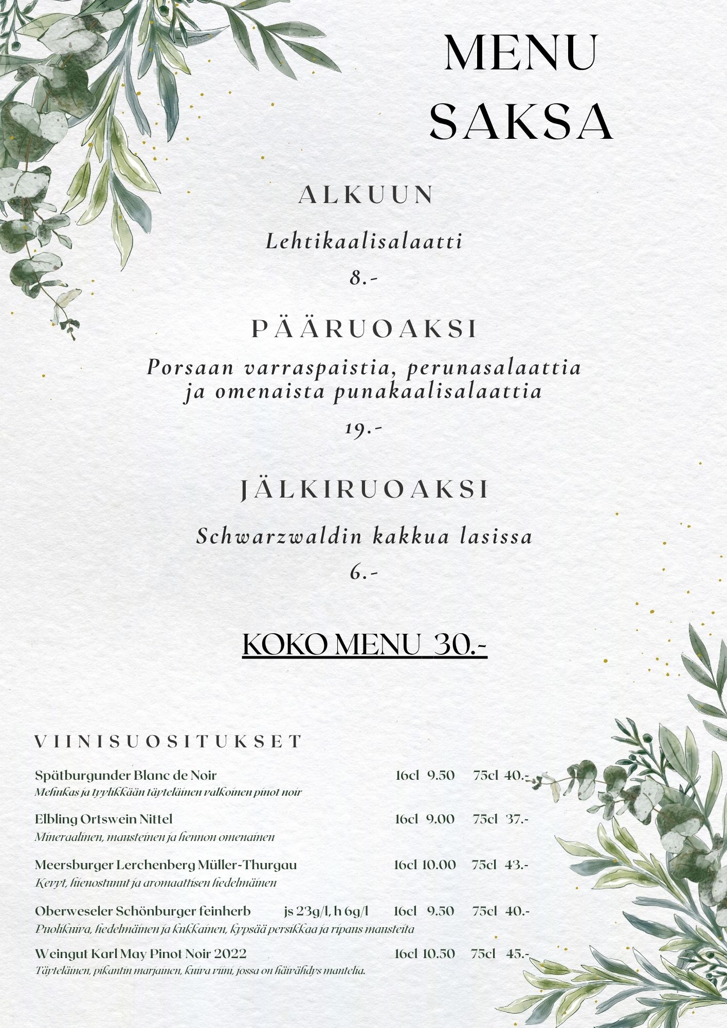 11.-30.8. palvelemme TI-PE 14-21 ja LA 12-22. Pöytävarauksia otetaan vastaan puh. 03-3891616 tai Viinitupa Vuorenmaja - Varaa pöytä!